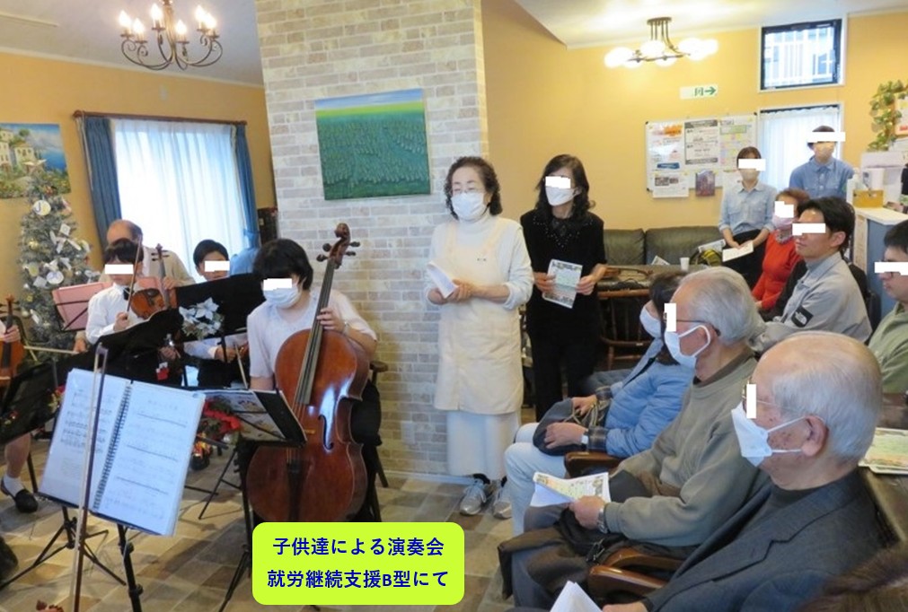 | 行事 | 茶話会、ハイキング、お誕生日パーティ、ハロウィン、 クリスマス、年末年始(おせち料理)、節分、ピアノ伴奏に よる歌唱会、七夕、癒しの木定期コンサートへの 無料ご招待(著名演奏家)等 *いろいろなイベントを企画を企画し、楽しく開催・ 実践させていただいております。 |